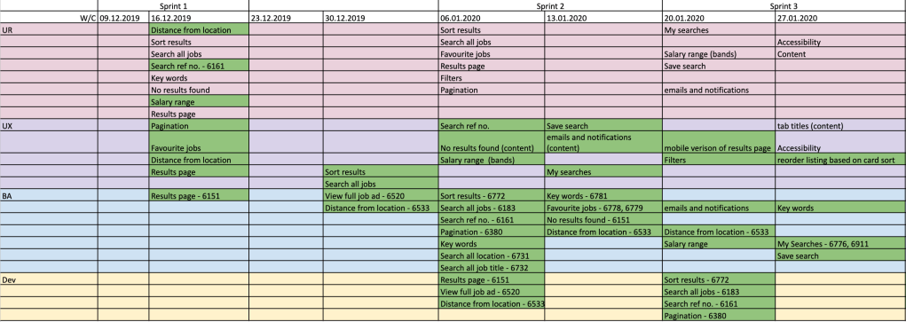 Below is an example of a plan we created at NHS Jobs, when delivering the ‘search’ element.